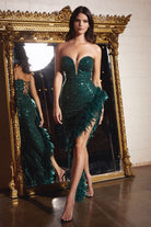 HIGH LOW SEQUIN FEATHER GOWN CDCD229