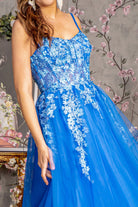 Jewel 3D Flower Sheer Bodice Mesh A-line Long Prom Dress GLGL3309