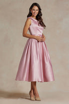 One Shoulder Satin Open Back Midi Evening & Prom Dress