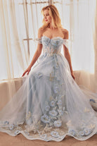 OFF THE SHOULDER FLORAL APPLIQUE BALL GOWN CDA1246