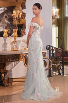 OFF THE SHOULDER FLORAL APPLIQUE GOWN CDCD005