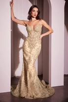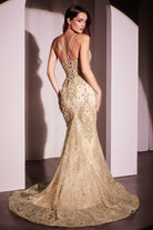 Embroidered Mermaid Gown with Sheer Bodice and Glitter Tulle – Gold & Silver