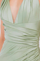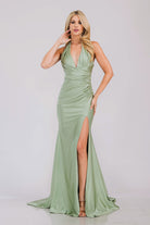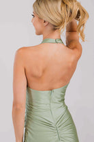 Exquisite Sheath Maxi Gown w/ Halter Neckline Pleated Waistline & Mid-Open Zipper Back AC3040