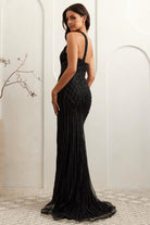 Crafted to accentuate your natural grace, the sheath silhouette gracefully hugs your curves, complemented by a front slit for an added touch of allure and ease of movement.