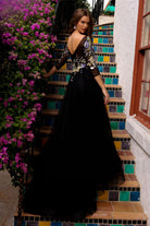 Tulle Skirt Side Slit Sheer Embroidered Bodice Long Mother Of The Bride Dress