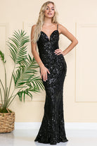 Illusion V-Neck Embroidered Sequins Long Prom Dress