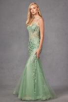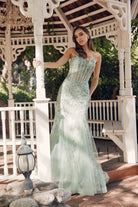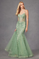 Lace Applique Sheer Bodice Corset Boning Mermaid Long Prom Dress