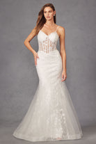 Fitted Sheer Bodice Tulle Mermaid Skirt Long Wedding Dress JTJT2441SW