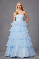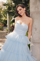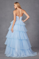 Ruffle Tulle Skirt Strapless Sweetheart A-Line Long Prom Dress
