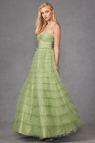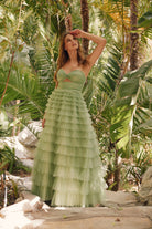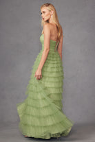 With a sweetheart neckline, sleeveless strapless design, and a lace-up back, this dress exudes romance and sophistication. Available in neon pink and sage green, its long length adds a vibrant touch to the overall look.