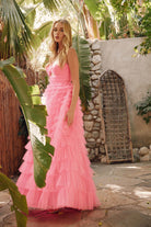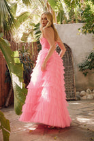 Strapless Keyholes Tulle Ruffle Skirt Long Prom Dress JTJT2456H