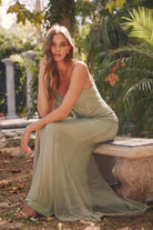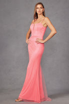 Rhinestone Net Mesh Fitted Corset Long Prom Dress