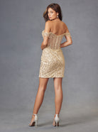 Fitted Off Shoulder Sequin Illusion Sweetheart Short Cocktail Dress