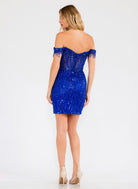 Fitted Off Shoulder Sequin Illusion Sweetheart Short Cocktail Dress JTJT919L