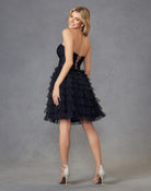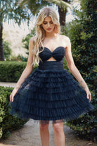 Strapless Tulle Ruffles Keeyhole Bodice Short Cocktail Dress