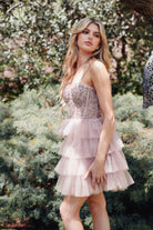 Leaf Lace Corset Ruffle Tulle Skirt Short Cocktail Dress JTJT923S