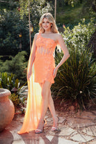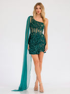 One Shoulder Cape Leaf Lace Bodice Short Cocktail Dress JTJT937R