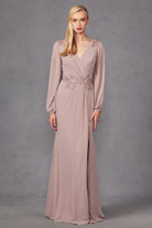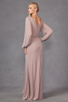 Get ready to turn heads with this stunning mother of the bride dress. Crafted from 100% polyester, it boasts a figure-flattering fit with a beaded bodice and a fitted slit for added elegance. The v-neck and open v-back design add a touch of sophistication, while the long sleeves provide coverage and warmth.