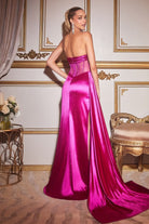 Fuchsia, Red, Black Strapless Satin Corset Gown with Side Slit and Train CDCD269