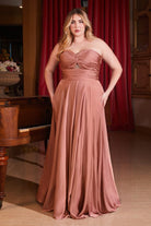 Satin Strapless Kyhole A-Line Open Back Sweetheart Long Evening Dress CD7496C will make you look sensational. With a strapless silhouette, the dress features a flattering A-line shape with subtle gathering at the waist and a keyhole open back bodice. Whether you’re prepping for a special event or dressing up for bridesmaid duties, this dress will draw attention and intrigue.