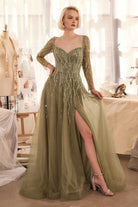 Navy Blue Long Sleeve Beaded Tulle Gown – Elegant A-Line Evening Dress with Illusion Bodice