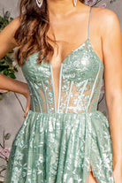 Sequin Illusion Sweetheart Sheer Bodice Mesh A-line Long Prom Dress GLGL3254