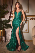 SEQUIN PRINTED FITTED BUSTIER GOWN CDCM334