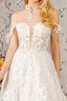 Sheer Bodice Sweetheart Mesh w/ Long Back Drape Long Wedding Dress GLGL3449