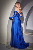 Shimmery Memriad Gown w/ Off Shoulder Bodice & Gloves Sleeves. Perfect for Proms & Red Carpet Events CDCD988