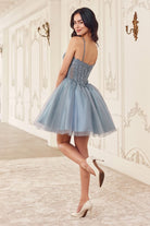 Dusty Blue, Gold & Blush Short Corset Tulle Dress | Sparkly A-Line Mini Party Dress CDCD0236
