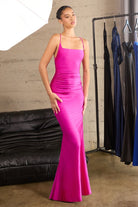 Magenta Satin Bodycon Mermaid Gown with Square Neckline