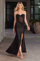 STRAPLESS FITTED SATIN & HOT STONE DRESS CDCD2408