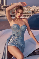 Strapless Off-Shoulder Embroidered Glitter Evening Dress with Side Slit CDJ884
