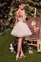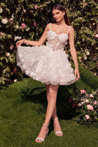 Short White 3D Floral Corset Dress with Sheer Bodice – Bridal & Reception Mini CDWL081