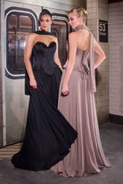 Strapless Evening Lightweight Chiffon Gown w/ Corset Bodice & Matching Flowing Scarf CDJ891