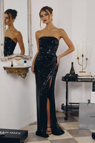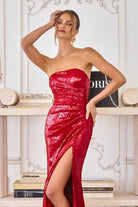 Strapless Sequin Prom Evening Gown Fitted Formal Dress with Draped Waist CDT724