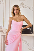 Strapless Sheath Evening Chiffon Dress w/ Side Sash & Ruched Waistline CDT726