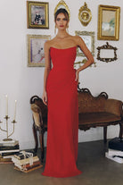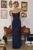 This strapless chiffon gown delivers refined sophistication through its minimalist neckline and expertly engineered silhouette. Strategic ruching at the waist creates definition while the flowing chiffon fabric maintains an ethereal quality. An asymmetrical side sash introduces contemporary movement and visual dimension to the design. The breathable construction provides comfort without compromising structure, while the adjustable lace-up closure allows for a customized, secure fit. Versatile across multiple occasions—from bridal parties and formal events to galas and milestone celebrations—this gown appeals to those seeking polished elegance with understated refinement.