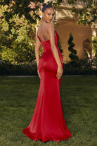 One Shoulder Evening Soft Satin Gown w/ Draped Waistline & Corset Bodice CDT727