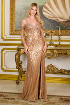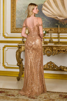 Dazzling Sequins Embellished Long Sheath Cold-Shoulder Evening Dress w/ Leg Slit GLGL3799