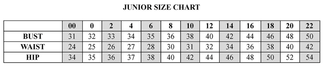 JUNIOR SIZE CHART