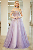 Radiate pure elegance in this stunning long prom dress that captures every eye in the room. The romantic sweetheart neckline and graceful off-shoulder straps create a flattering, feminine silhouette, while the semi-ball gown shape offers the perfect balance of drama and wearability. Intricate floral lace adorned with shimmering sequins and rhinestones catches the light beautifully, and layered skirt details add luxurious movement and dimension. The lace-up back provides a sophisticated touch, and the included matching choker completes your show-stopping look. This is the dress that transforms an ordinary evening into an unforgettable memory. Please note: petticoat not included.