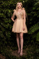A-Line Tulle Babydoll V-Neck Embroidered Bodice Short Cocktail Dress CDCD0174
