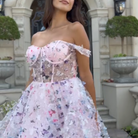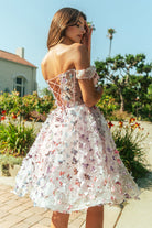 3D Butterfly Embellished Organza Cut-Away Shoulder A-Line Homecoming Dress w/ Lace-Up Back