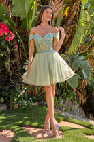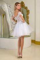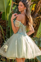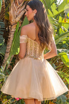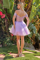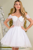 Mini Homecoming Off The Shoulder Mesh Dress w/ Boned Bodice & Front Broche GLGS3684