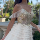 Pleated Mesh Skirt Sheer Bodice Glitter Pattern Embellished Homecoming Dress w/ Lace-Up Back
