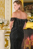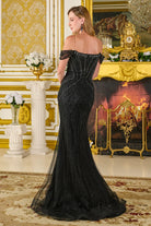 Dazzling Beads Embellished Off The Shoulder Mother Of Bride Fitted Gown GLGL3667