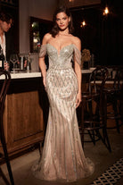Blush Nude Off-Shoulder Beaded Gown with Sweetheart Neckline & Fitted Mermaid Silhouette CDCC477