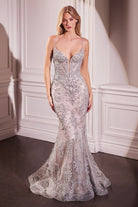 Embroidered Mermaid Gown with Sheer Bodice and Glitter Tulle – Gold & Silver