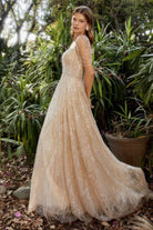 Glass Beaded A-Line Scoop Neck Shoulder Detailed Bodice Royal Long Prom Dress CDA1112